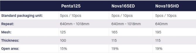 میدانیم که شابلون اشتورک با مش ۱۲۵، بیشترین استفاده را در بازار چاپ پارچه دارد. اکنون شرکت اشتورک با ارائه شابلون Nova 165ED به شما تضمین افزایش کیفیت چاپ طرح‌های ترام را بدون ایجاد تغییری در مراحل چاپ می‌دهد. جهت بهبود چاپ طرح‌های ترام، عوامل دیگری به جز تعداد مش وجود دارد. ضخامت دیواره‌های شابلون و اشکال مختلف حفره‌های شابلون( دایره، هشت ضلعی، مربع) به منظور دستیابی به زوایای مناسب، قطعا منجر به بهبود کیفیت چاپ شما می‌شود.