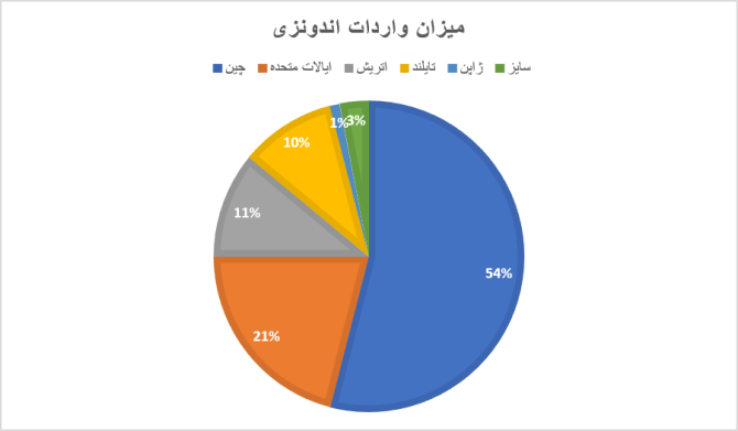 ژاپن: در حالیکه حجم واردات از این کشور نسبتاً پایین (۱.۰ میلیون دلار) است این امر بیانگر تنوع طیف مبادی وارداتی اندونزی است.