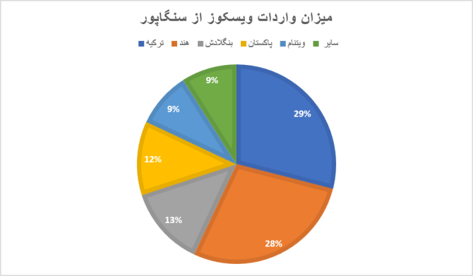 ترکیه: ترکیه در صدر فهرست شرکای صادراتی، ۸/۷۵ میلیون دلار از صادرات ویسکوز سنگاپور را به خود اختصاص داده است. روابط تجاری قوی سنگاپور با ترکیه، در بخش ویسکوز، به طور بالقوه ناشی از موقعیت سنگاپور به عنوان یک مرکز تجاری در منطقه است.