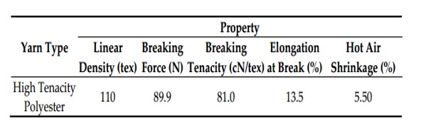 جدول ۱: مشخصات نخ پلی استری ۱۱۰ تکس
