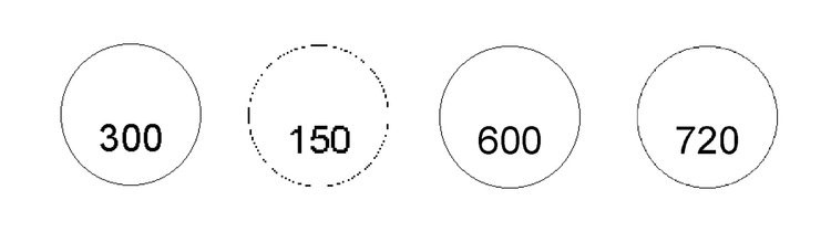 نمونهای از طرح دایره: وضوح پایین با dpi 150 منجر به انقطاع در خطوط شده است و در رزولوشن افزایش یافته به dpi 720 تکرار خطوط اضافه شده توسط نرم افزار به آسانی قابل مشاهده است.