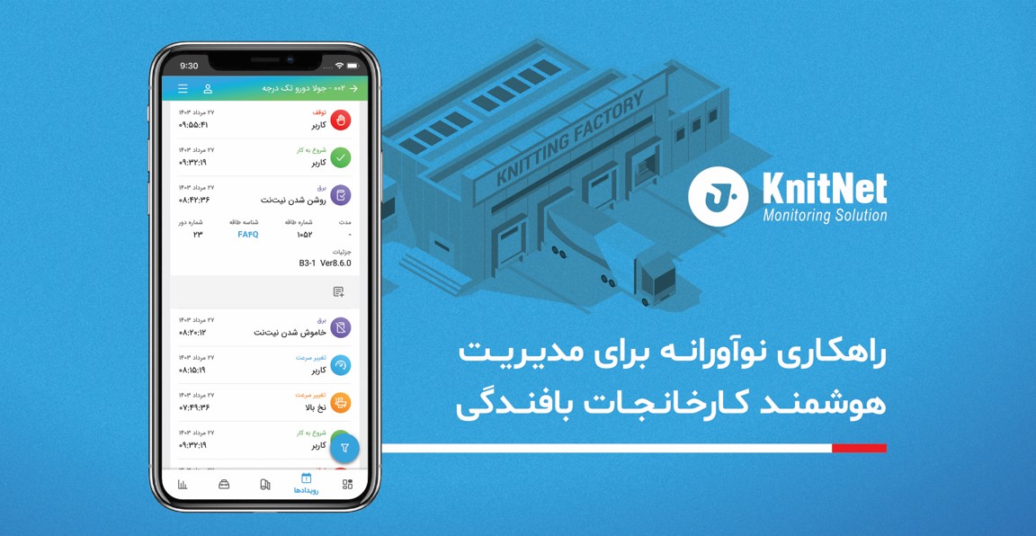 پلتفرم نرم افزاری نیتنت، این امکان را برای مدیران فراهم میکند تا از هر مکان و زمان، هر رویدادی که در ماشینهای بافندگی کارخانه رخ داده را ملاحظه و رصد نمایند. این قابلیت بسیار ارزشمند است چرا که مدیران میتوانند مشکلاتی مانند توقفهای بیش از اندازه و غیرعادی یا افت عملکرد ماشینها را بلافاصله شناسایی و در جهت رفع آنها تصمیم سنجیدهتری بگیرند.
